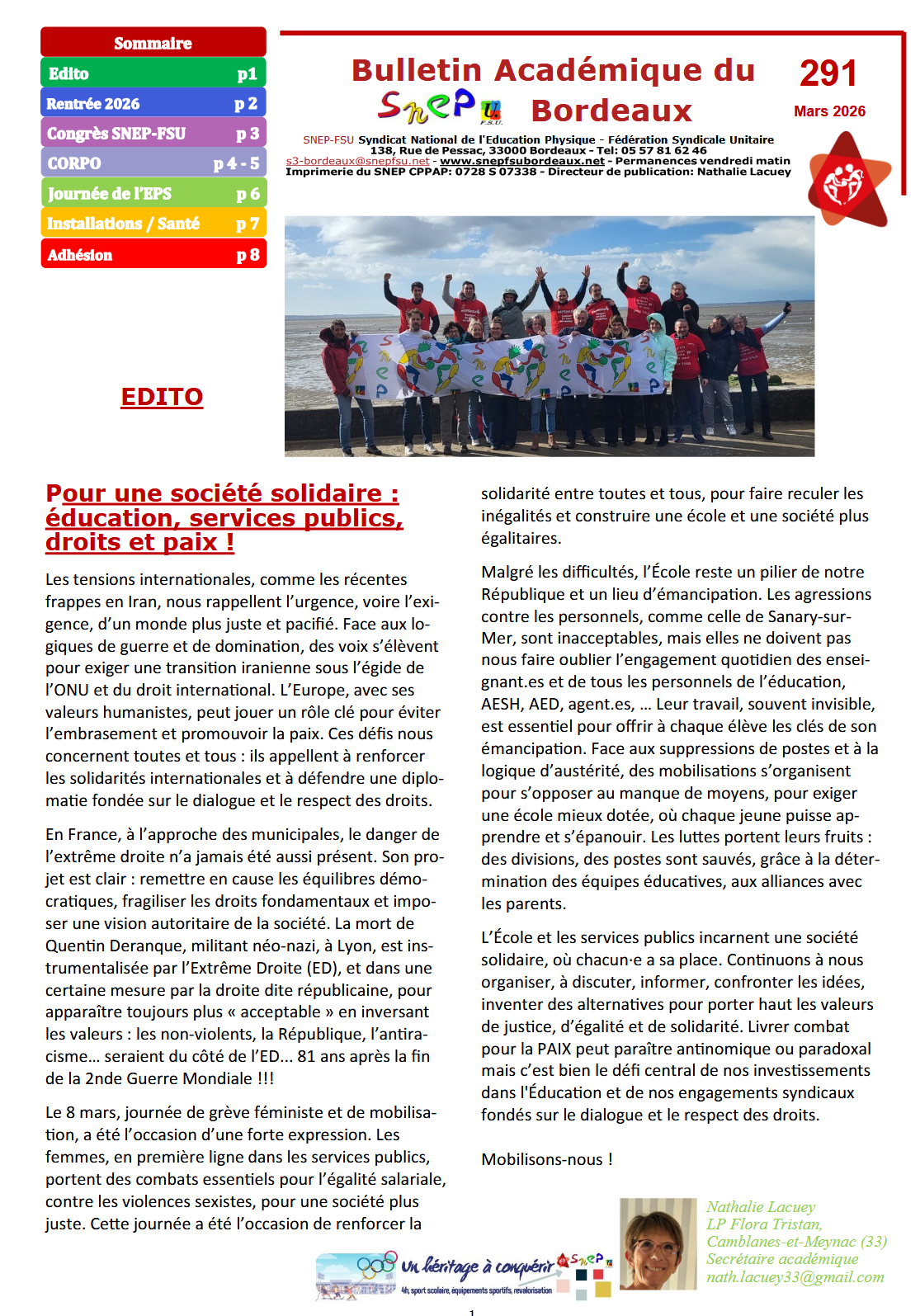 Fabrice ALLAIN Secrétaire départementalCommissaire paritaire *protected email*06 63 49 12 73 Nathalie LACUEY Secrétaire académiqueCommissaire paritaireEmploi, stagiaires *protected email*06 83 16 20 48 Alain DE CARLO Secrétaire nationalAdhésion, correspondants de secteurs *protected email*06 84 01 61 11 Christian PIERRAT Equipements sportifs *protected email*06 28 30 59 15 Jérémy CARE Equipements sportifs *protected email*06 23 08 32 34 Laurent CHEVALIER Trésorerie, péda *protected email*06 80 65 17 45 Laetitia MAUHE Sport scolaire, FSU *protected email*06 21 71 30 52